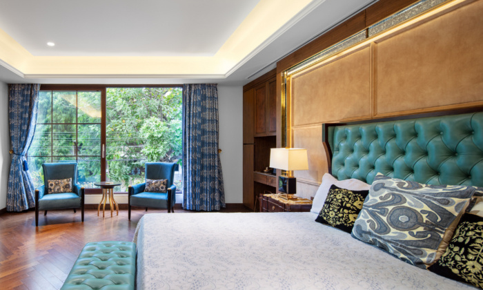 Another element of design, tenuous cast iron railing gracefully binds the interior elements contributing to its elegance evasively. Each floor and their respective rooms along with its bathrooms are a reflection of the users’ personality; Bringing together divergent interests and personalities, the interior Design allowed for sufficient experimentation with accessories such as rugs, curtains, wallpapers and adornments such as lamps, chandeliers, art on the walls and elsewhere.